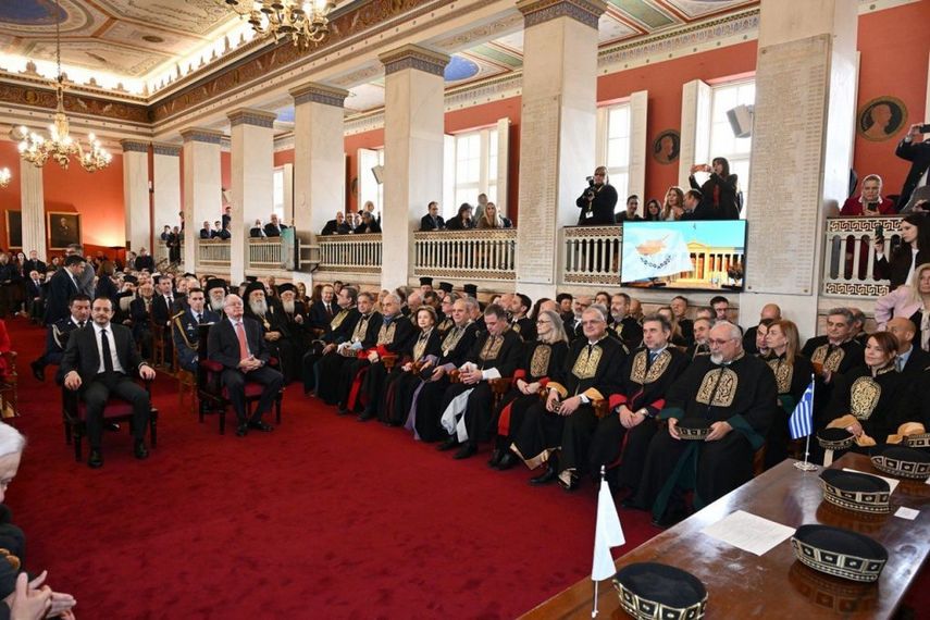Beyond the sense of joy and pride, I feel a particular honour and emotion in representing, at this dignified ceremony hosted by the oldest higher education institution of modern Greece, the Republic of Cyprus and its people.